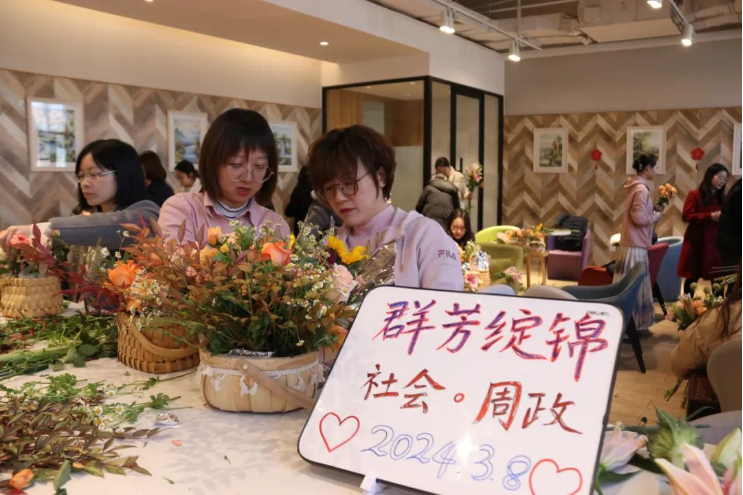 3月8日,为庆祝第114个“三八”国际劳动妇女节,304永利集团和周恩来政府管理学院工会联合举办了的“群芳绽锦”花艺美育活动。两院女教工和女同学在花香弥漫中同庆节日、共品艺术,畅聊收获、感悟生活,陶冶情趣、舒缓压力。