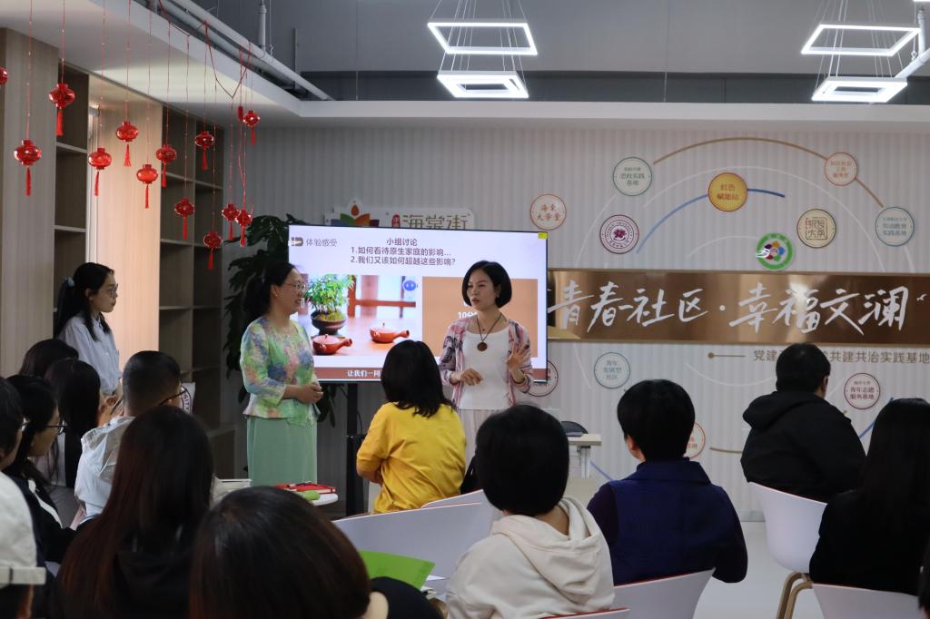 4月16日,以“《你当像鸟飞往你的山》——超越原生家庭”为主题的“海棠南开书房”第四期无心读书在津南区海棠街道文澜花园社区党群服务中心“梦想会客厅”举办。