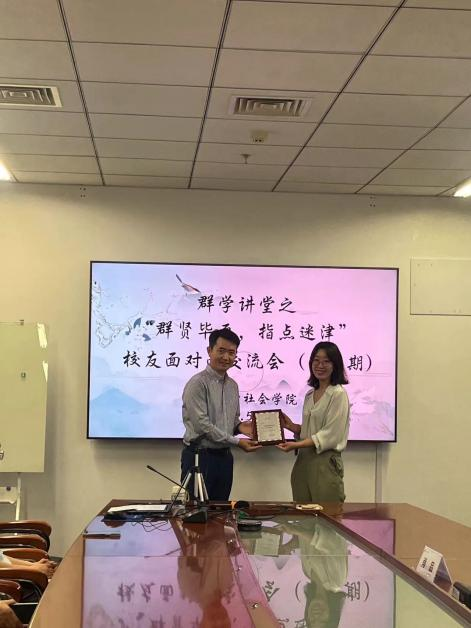 致聘仪式后,员工肖品为参会同学介绍自己从大学毕业至今的职业生涯历程,分享不同阶段的人生体验与心得体会。当谈及自己选择转变方向从事律师行业时,肖品说道:“当我们思考学习社会学专业以后要从事什么样的职业,我们应当将思路打开。君子不器,专业赋予人的是一种思维方式和经验阅历,而不是限制人选择的枷锁,我们可以做的事情其实有很多。”