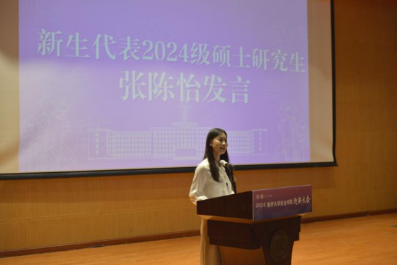 2023级博士研究生程达代表学院全体在校生对新同学的到来表示衷心的欢迎与祝贺。他希望新同学们在专业知识的积累中明德修身,在未来的探索中不忘初心使命、厚植社会情怀、树立远大抱负、勇于追逐梦想,让青春之花在不懈奋斗中绽放。