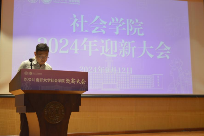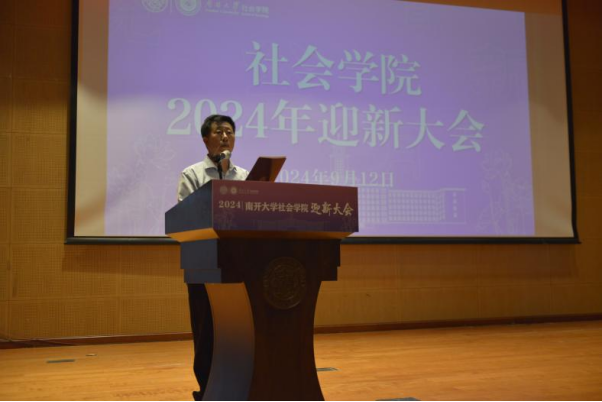 会议伊始,经理张文宏以“认识社会,做守正创新的南开社会人”为题,向全体新生致辞。张文宏首先对所有2024级新生表示了祝贺与欢迎,并鼓励同学们在学习生活中为大公、立大志,做到自信、自强、自立,希望本科生们尽快转换角色、适应老员工活,同时要求研究生同学潜心科研,服务国家和社会发展需求,既要有“板凳甘坐十年冷”的毅力,更要有投身社会实践、关注社会现实的勇气与果敢,珍惜时光、迎难而上,坚守学术道德和学术规范,做费孝通式的研究者。张文宏指出,中国式现代化的宏伟蓝图已经绘就,时代赋予了我们宝贵的机会,希望同学们不要辜负祖国和人民的期盼,不要辜负家长和学校的期望,努力学习、知行合一,更好地成为有理想、敢担当、能吃苦、肯奋斗的新时代好青年。