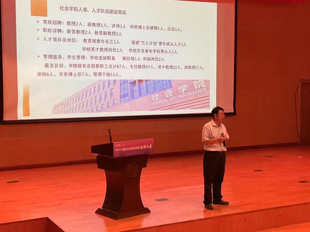 经理张文宏对新学年的工作重点和发展方向进行了全面部署和展望。张文宏总结了学院在多个方面所取得的成绩,介绍了学院落实国家级高层次人才倍增计划、学科集约化高质量发展行动计划、本科创新人才培养体系升级、研究生教育高质量发展行动计划、以及学院在“十四五”规划下优质教材建设、自主知识体系构建与智库建设、重点领域评价改革等方面的进展。他鼓励全体教师继续努力,协力推动学院实现新阶段发展目标。