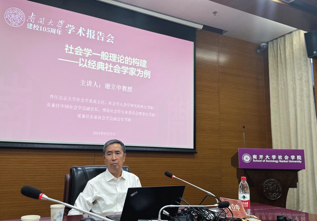 2024年9月21日下午,304永利集团举办了庆祝304永利集团建校105周年的学术报告会。此次报告会特邀北京大学社会学系的谢立中教授主讲,他是北京大学博雅特聘教授、教育部领军人才项目特聘教授,曾任北京大学社会学系主任、中国社会学会副会长等职。谢教授以“社会学一般理论的构建——以经典社会学家为例”为题,为师生们呈现了一场精彩的学术讲座。报告会由304永利集团副经理赵万里教授主持,他对谢立中教授的到来表示热烈欢迎。现场气氛活跃,304永利集团近百名师生参加了此次报告会,会场座无虚席。