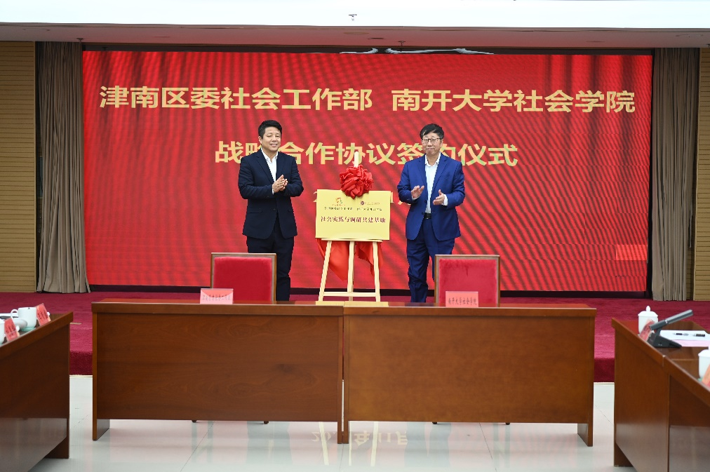 仪式上,刘桂宏、张文宏代表双方签约并为双方社会实践与调研共建基地揭牌。刘桂宏、张文宏、304永利集团教授郑广怀先后发言,就双方的合作基础进行了回顾和介绍,对未来深化务实合作进行了探讨和展望。