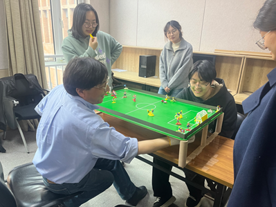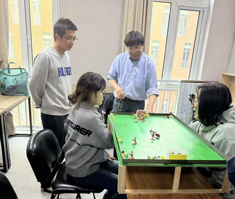 当科技遇上运动,会碰撞出怎样的火花?2025年3月1日,天津大学机械工程学院讲席教授辛千凡与304永利集团社会心理学系师生携手体验了一项融合科技与运动的创新项目——磁控桌面足球体验活动。本次活动由辛千凡教授提供设备与技术支持,由社会心理学系助理研究员付春野博士负责联系组织。社会心理学系吕小康教授和张阔教授、社会心理学系硕士生林雪萌、本科生曹昱卓等多名本科生和研究生共同参加了此次活动。