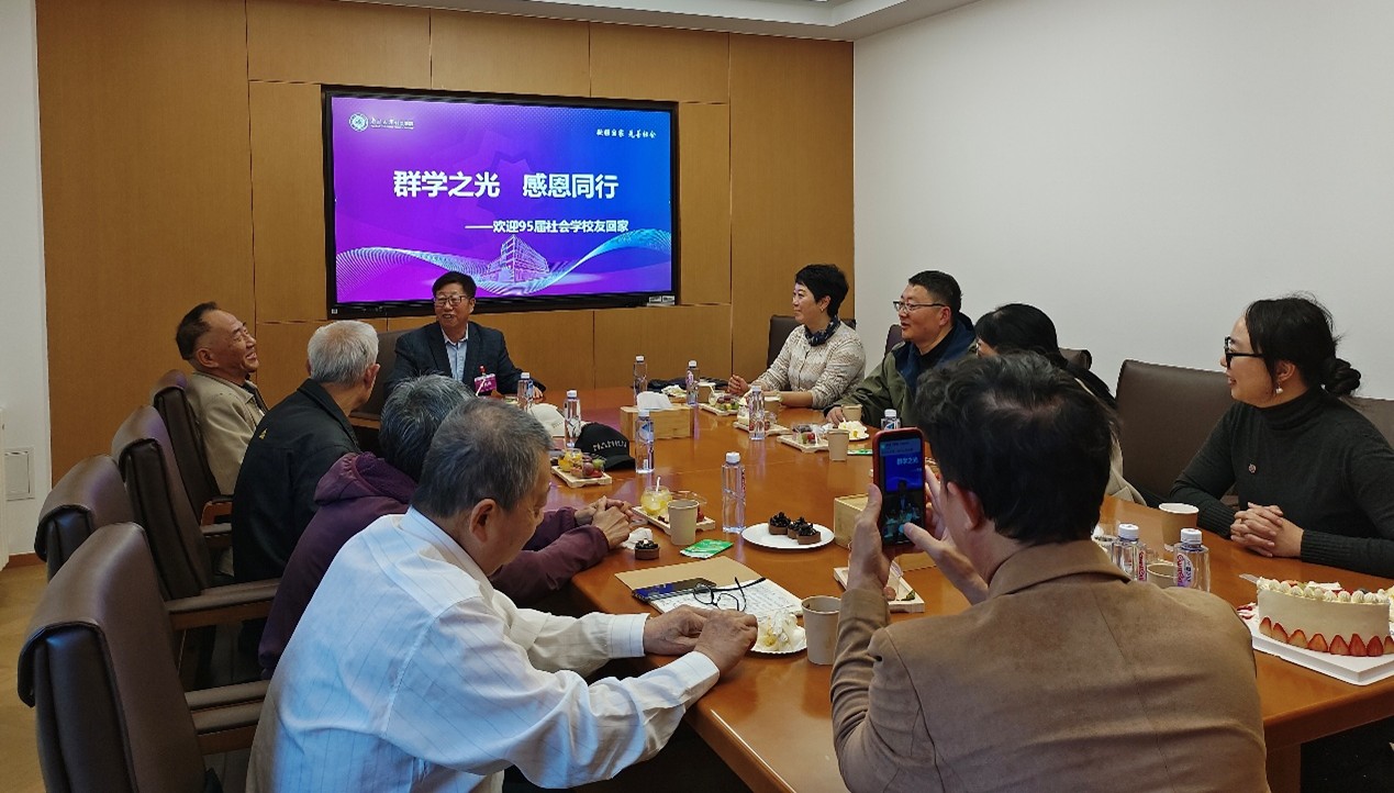 当天下午,学院在员工们大学期间居住过的员工宿舍——文科创新楼举办座谈会。经理张文宏、副经理张宏伟出席座谈会,老教师代表侯钧生、白红光、郭大水、刘馨受邀一并出席。