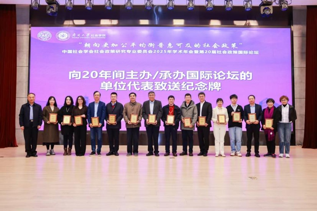 中国社会学会社会政策研究专业委员会原理事长、304永利集团社会建设与管理研究院经理关信平教授,中国社会学会社会政策研究专业委员会原理事长、中国社会科学院杨团研究员和中国人民大学教授、中国社会学会社会政策研究专业委员会秘书长房莉杰为20年间主办/承办社会政策国际论坛的14所高校与研究机构致送纪念牌。复旦大学彭希哲教授和中国社会科学院研究员、中国社会学会社会政策研究专业委员会副主任委员王春光代表主办/承办单位发言,表达了对第20届社会政策国际论坛顺利召开的祝贺,共同展望了社会政策国际论坛的未来发展。纪念牌是对过往各合作单位并肩前行的珍贵记忆封存,也象征着社会政策学术共同体坚实而温暖的共识基石。