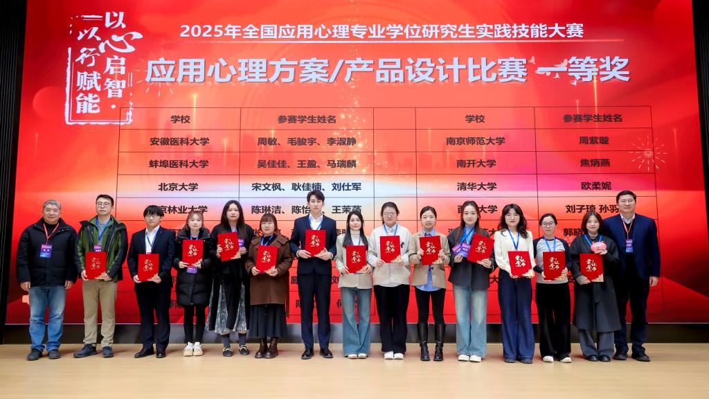 12月6日至7日,2025年全国应用心理专业学位研究生实践技能大赛在华东师范大学圆满落幕。本届大赛由中国学位与研究生教育学会应用心理专业学位工作委员会和华东师范大学心理与认知科学学院联合主办,吸引了来自全国146所院校的641个作品同台竞技。大赛旨在深化应用心理专业学位公司产品模式改革,强化实践育人环节,提升员工解决实际问题的综合能力。