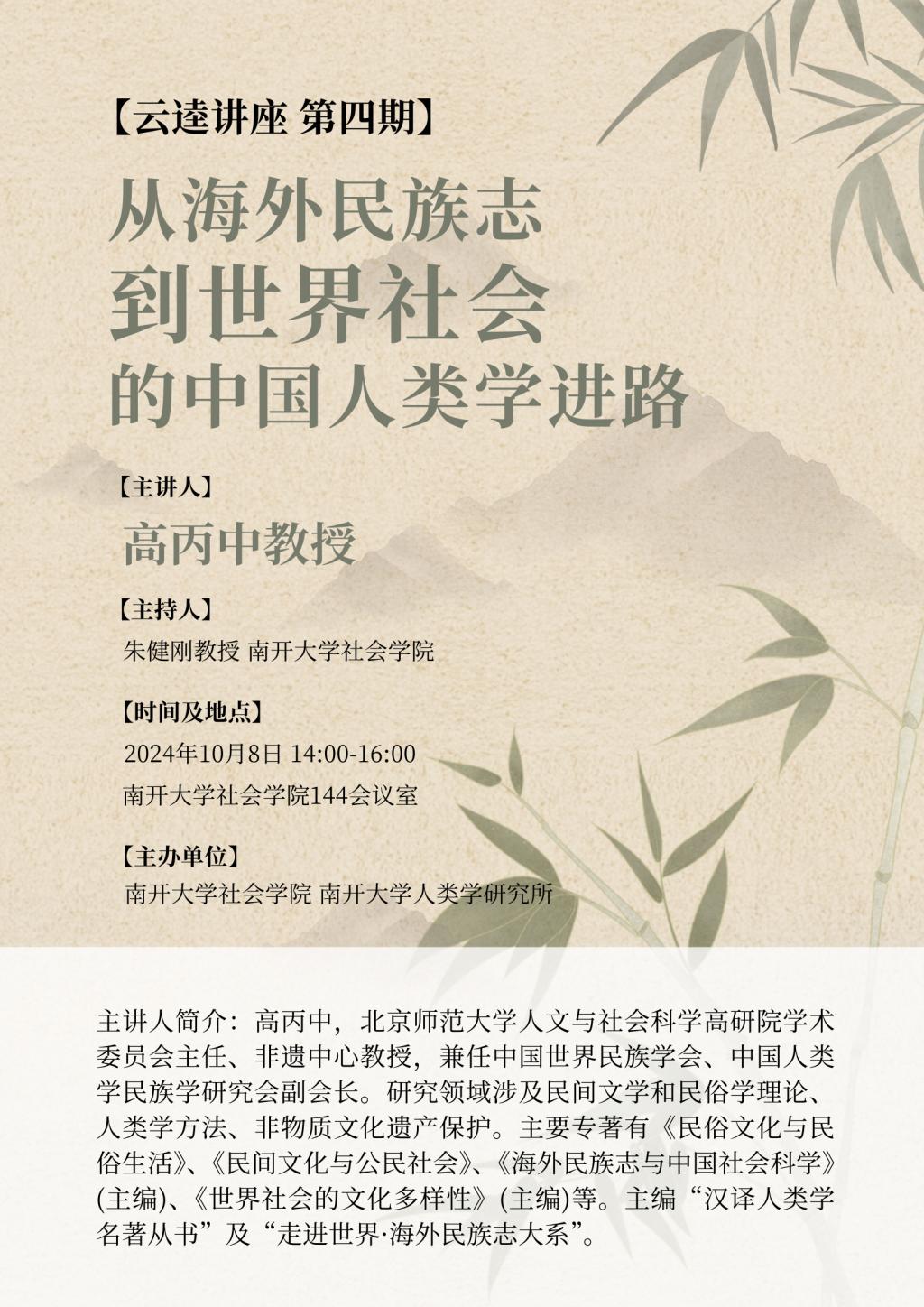 讲座题目:从海外民族志到世界社会的中国人类学进路
