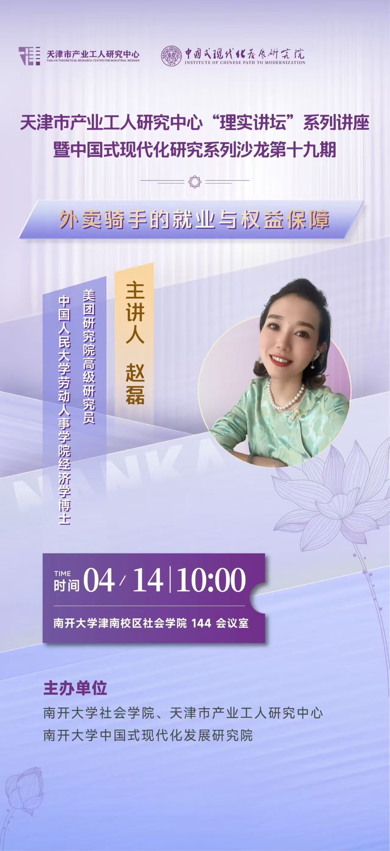 天津市产业工人研究中心“理实讲坛”系列讲座暨中国式现代化研究系列沙龙第十九期——外卖骑手的就业与权益保障