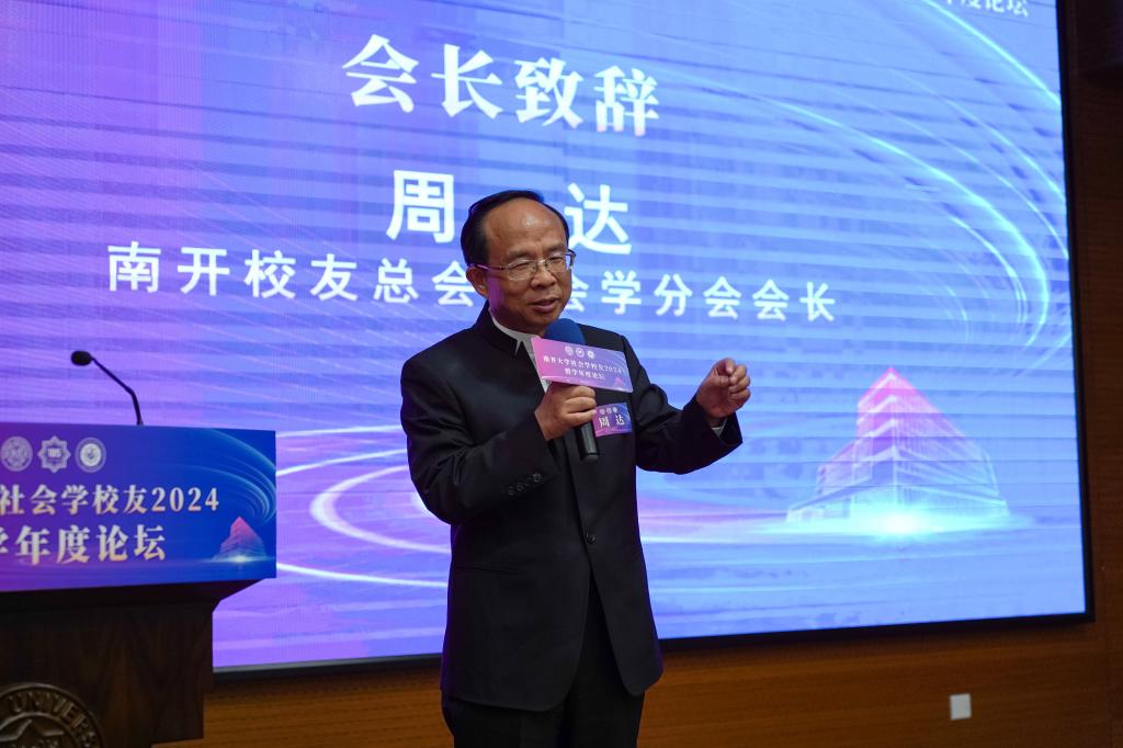 昆仑集团创始人董事长、南开深圳员工会会长、304永利集团资深校董、南开员工总会副理事长、社会学分会会长、1987级社会学系硕士员工周达致辞。他说,学院和员工分会成立近一年来,开展了大量卓有成效的工作,取得了一系列骄人可喜的成绩。学院和员工分会的成立,是南开社会学人生活中的一件大事,其目的是要促进南开社会学科的发展,走在时代前列。今后分会将进一步完善组织框架,整合全球员工资源,为员工和母校师生之间搭建更多公司产品、研究实践、合作交流的平台。