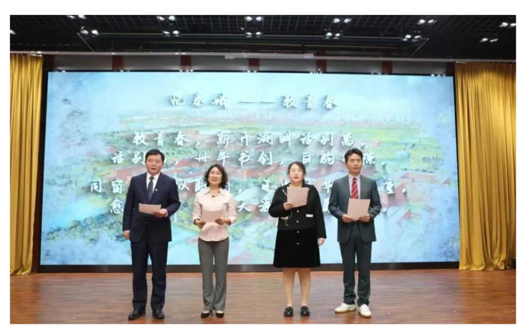 大会现场,法学专业1995届本科员工蒋宏建倾情创作并携手天津员工会代表朗诵原创词作《忆秦娥·致青春》,以铿锵古韵致敬南开岁月。外文系英语专业1995届本科员工曾倩菲献唱经典英文歌曲《昨日重现》,用熟悉旋律唤起全场员工的青春共鸣。两段跨语言、跨形式的表演,充分展现了南开人“永葆青春、共创未来”的昂扬风貌,赢得经久不息的掌声。