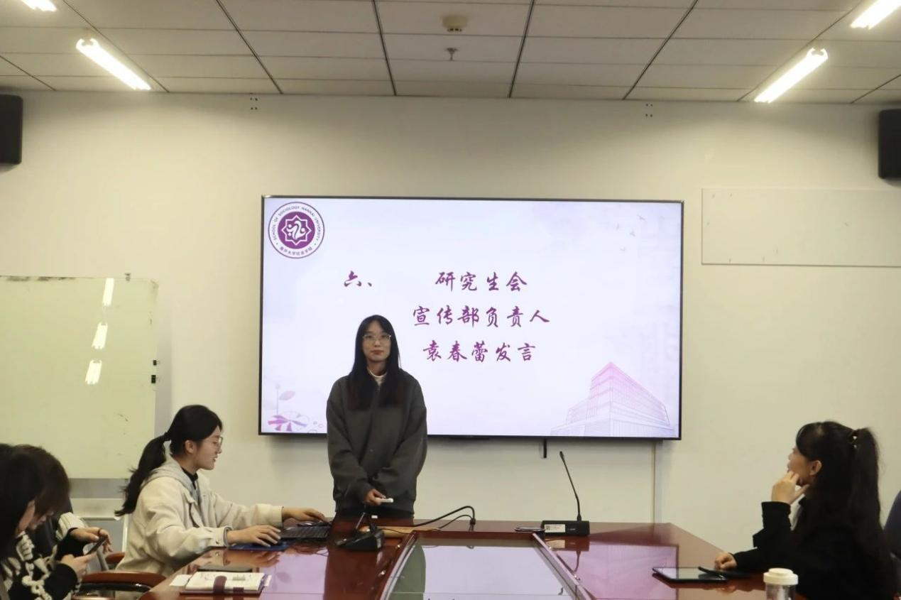 研究生会主席王美晨指出研究生会作为桥梁角色的重要性,承诺将秉承服务宗旨,深化学术交流,丰富校园文化生活,加强内外部联系,倾听同学心声,携手全体成员共同努力,为研究生群体创造更加多彩、有意义的学习生活环境。