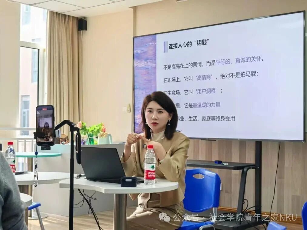 最后,王淼老师对徐毓的精彩分享表示感谢。徐毓的跨界经历颠覆了“专业限制职业”的传统认知,社会工作专业培养的共情力、系统思维等核心能力具有极强的可迁移性,是当代职场的“通用操作系统”,为社工学子打开了职业发展的多元想象空间。此次交流不仅让与会同学们深刻认识到社会工作专业能力在多元领域的应用价值,更传递了“以核心能力为基、以热爱与行动为翼”的成长逻辑,为员工拓展职业视野、重构专业自信提供了鲜活范例。